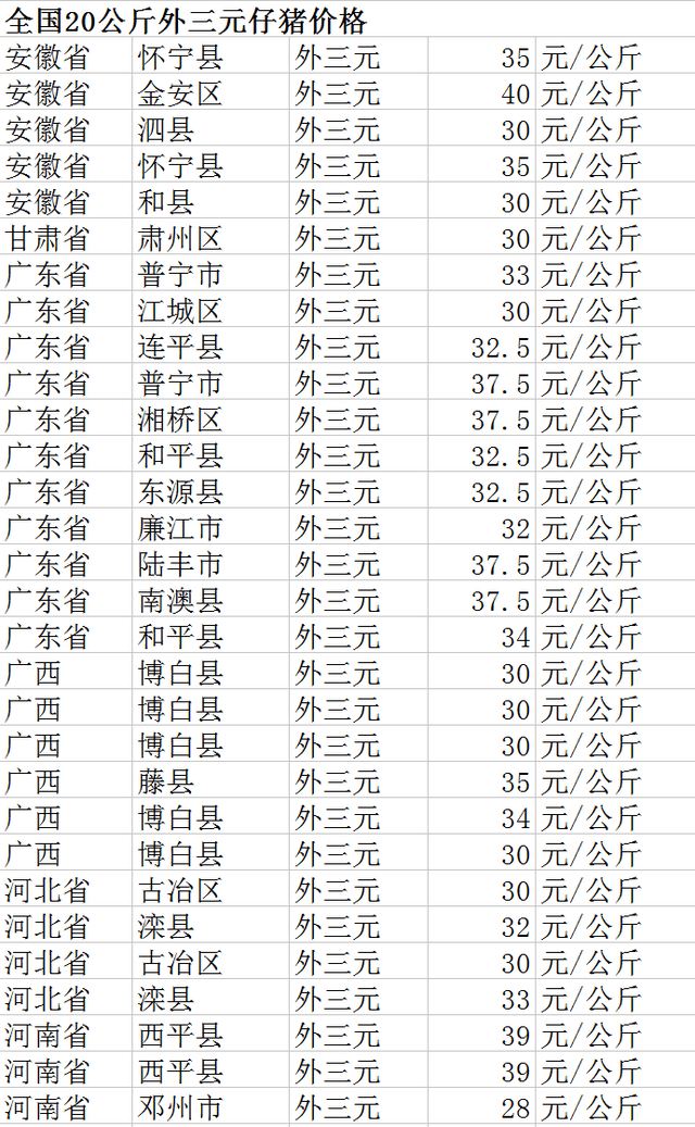 以某地区为例,近年来随着养殖业的快速发展,20公斤仔猪的市场需求逐渐增加,受季节性因素、养殖成本等因素的影响,该地区仔猪价格呈现出一定的波动趋势,在高峰时期,由于供应紧张,价格大幅上涨;而在低谷时期,则可能出现价格下跌的情况,养殖户在购买仔猪时需密切关注市场动态,把握时机。