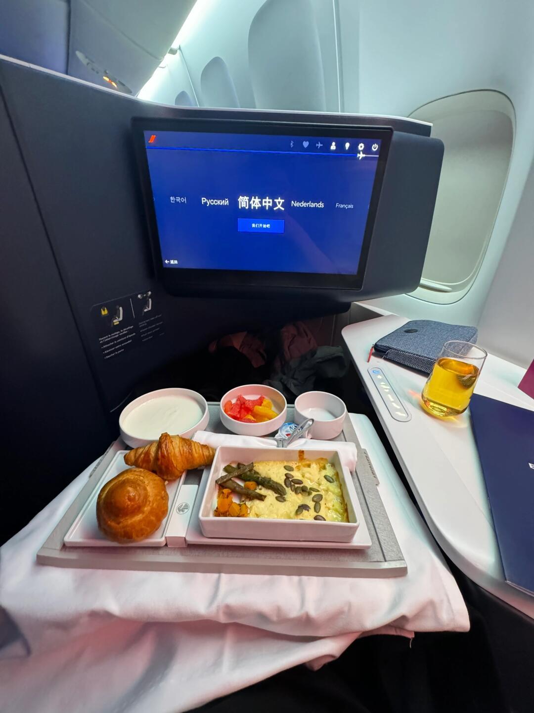 一踏入法航商务舱,仿佛进入了宁静的避风港,舒适的座椅、贴心的服务和精致的餐食,让人心情愉悦,我们可以暂时忘却生活的琐碎,沉浸在即将到来的探险之旅中。