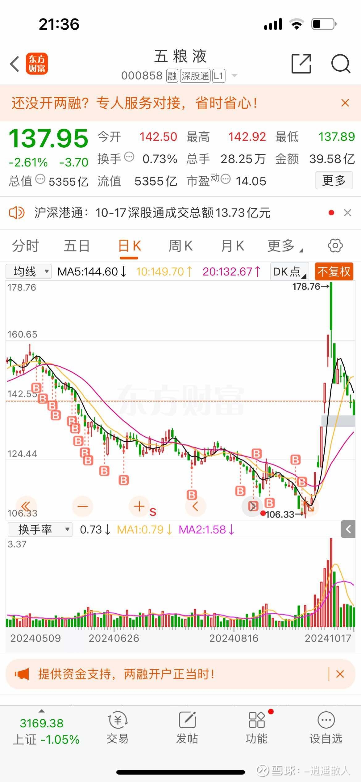 2、市盈率:相比同行业其他公司,五粮液股票的市盈率合理,显示出较强的投资吸引力。
