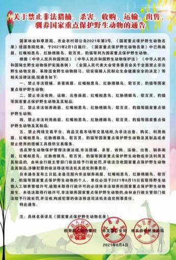 让我们聚焦野生动物的最新通知,大自然总是充满未知与奇迹,最新的野生动物保护通知为我们带来了关于野生动物的新动态和保护进展,通知中提到,政府及相关机构在野生动物保护方面取得了显著成效,许多濒危物种的数量正在稳步增长,这是一个振奋人心的消息,意味着我们的努力正在为野生动物创造一个更美好的家园,让我们共同守护这些大自然的精灵,关注野生动物栖息地的生态环境,积极参与野生动物保护行动。